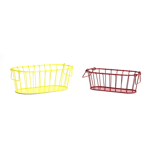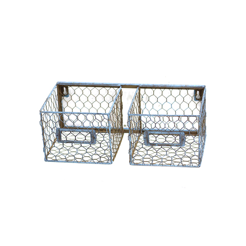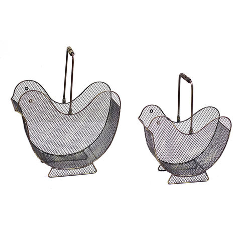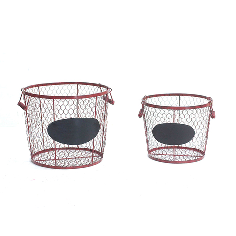MRメタルファームハウスチキンワイヤー収納バスケットハンドル付き2個セットスペース整理用