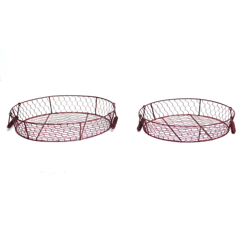 MR Stonebriar 2ピースラウンドメタルサービングバスケットセット素朴で装飾的な収納トレイ
