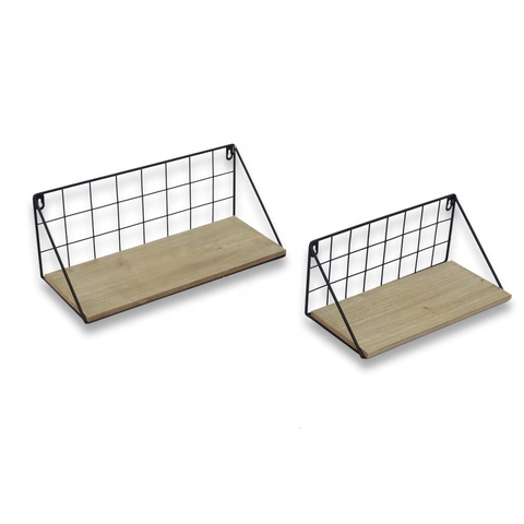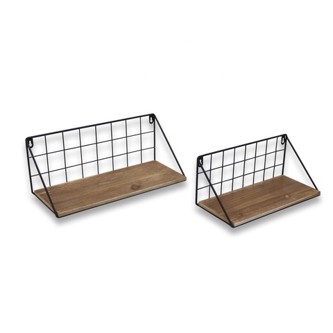 キッチンバスルーム用ウッドと金属壁に取り付けられたワイヤー棚リビングルーム装飾壁棚